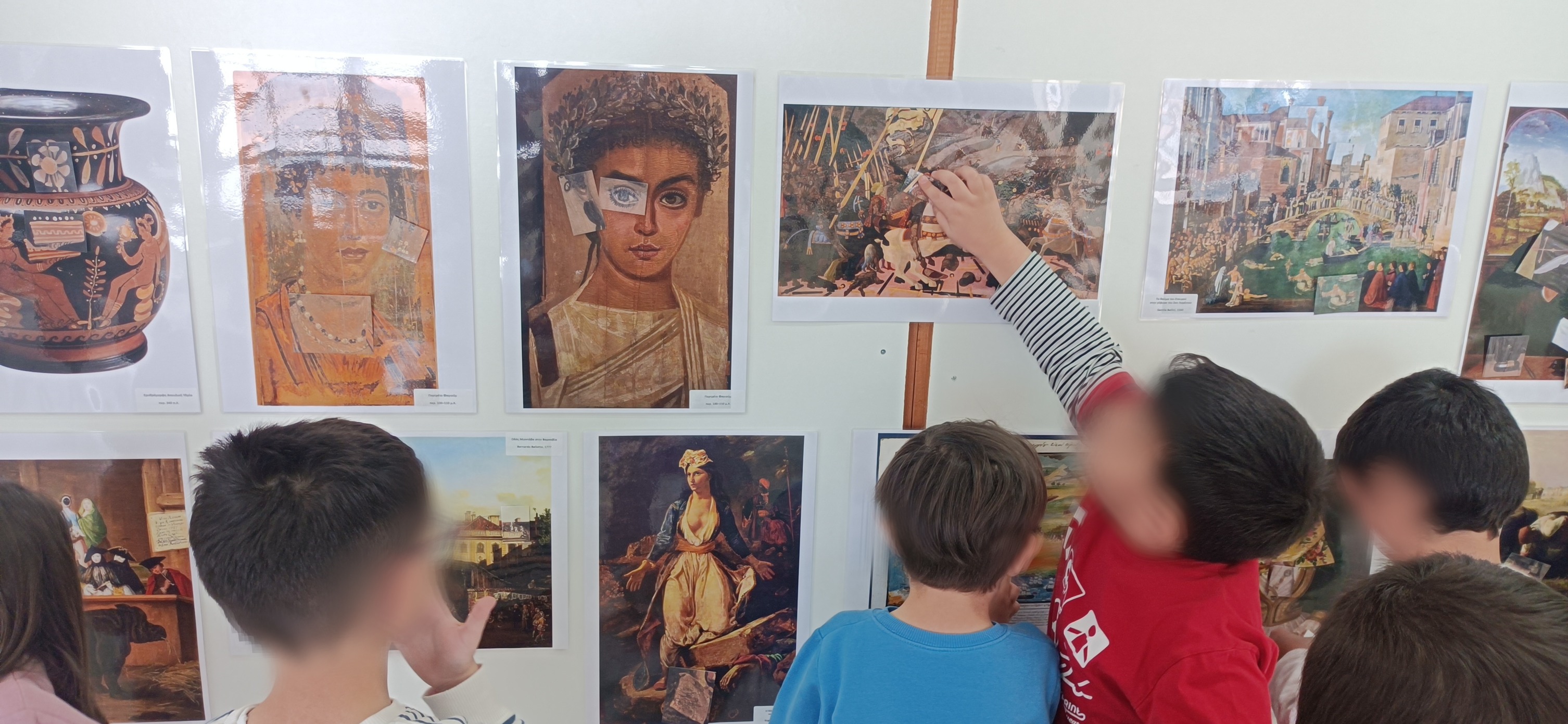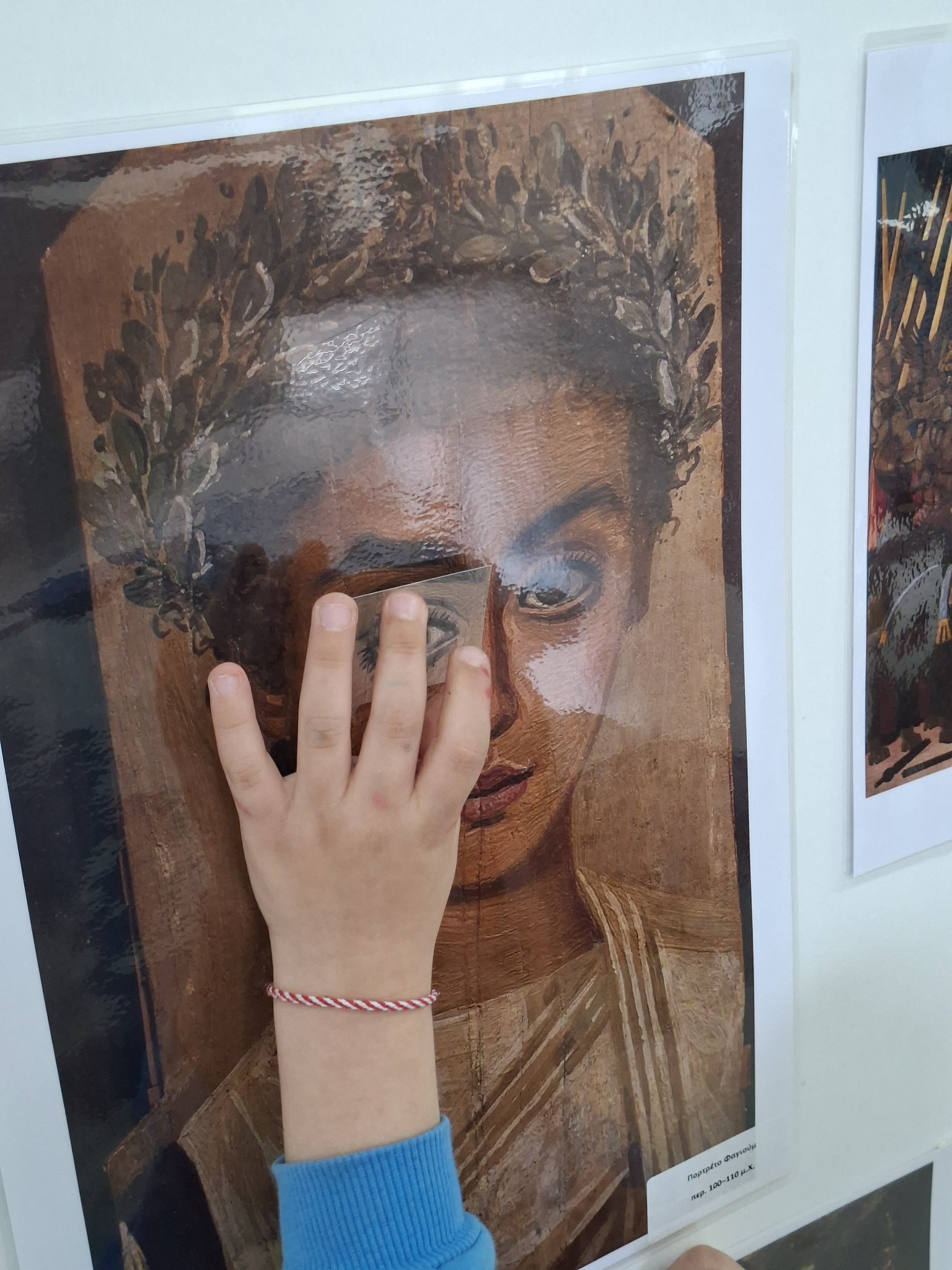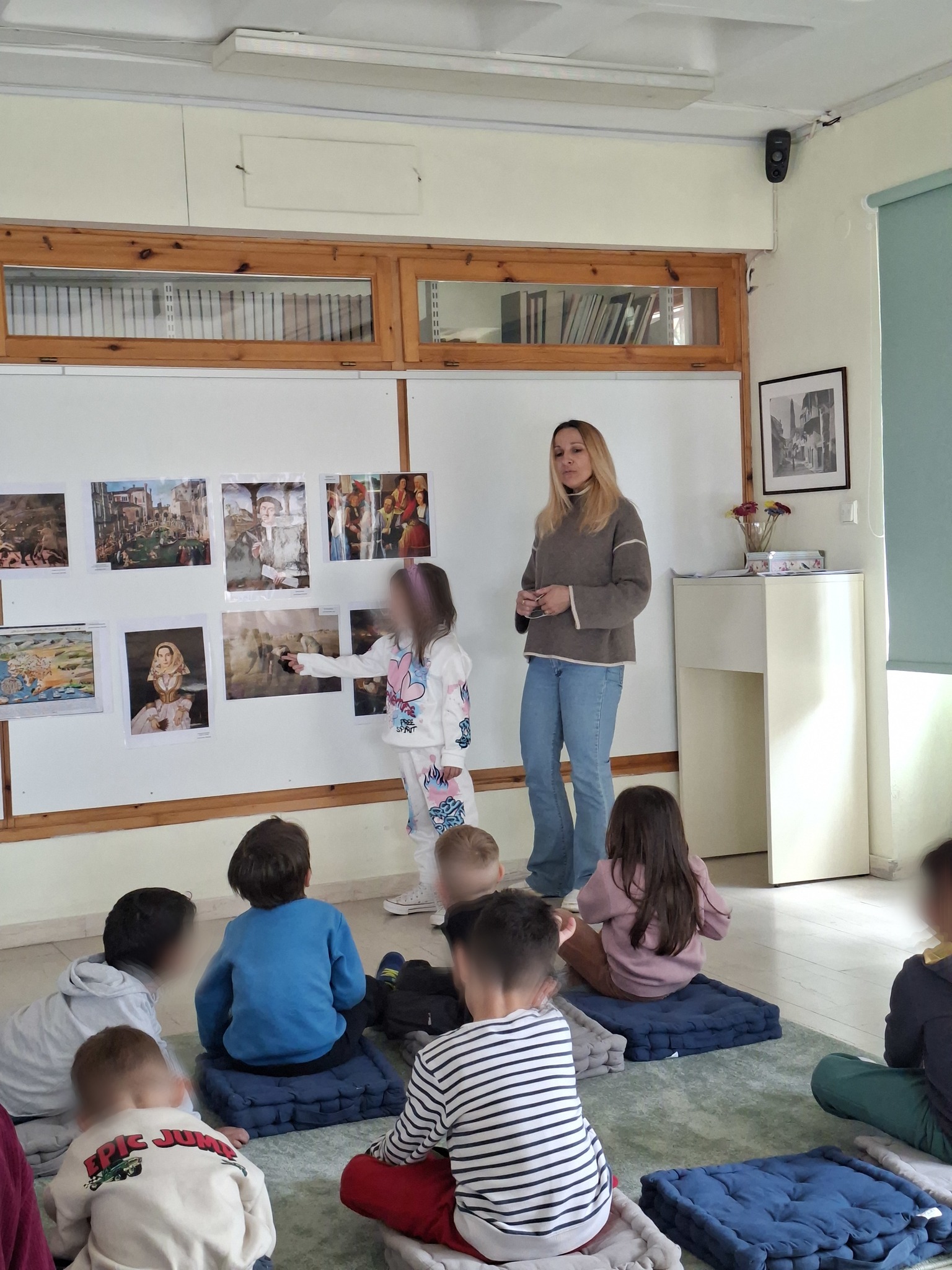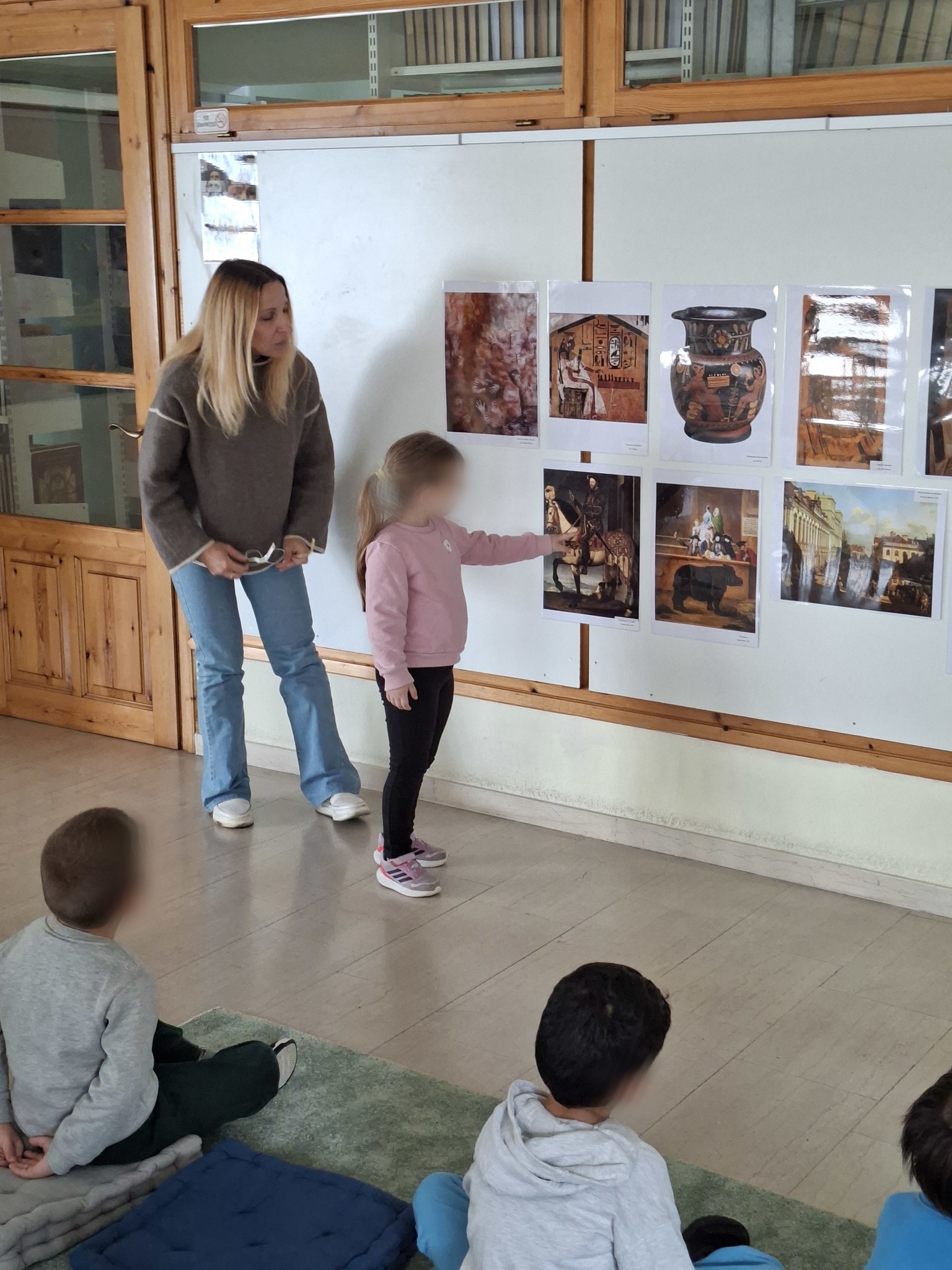 Αγγειογραφίες, τοιχογραφίες, πορτρέτα, πίνακες ζωγραφικής παρατηρήθηκαν με λεπτομέρεια από τα παιδιά και έγιναν “παράθυρο” για την ανακάλυψη του ιστορικού παρελθόντος. Τέλος μέσα από ένα παιχνίδι παρατηρητικότητας, οι μαθητές του 2ου Νηπιαγωγείου Κόνιτσας ταίριαξαν τις κάρτες στο εκάστοτε έργο τέχνης και η αγωνία, η ένταση, η χαρά αποτυπώθηκαν στο πρόσωπό τους!