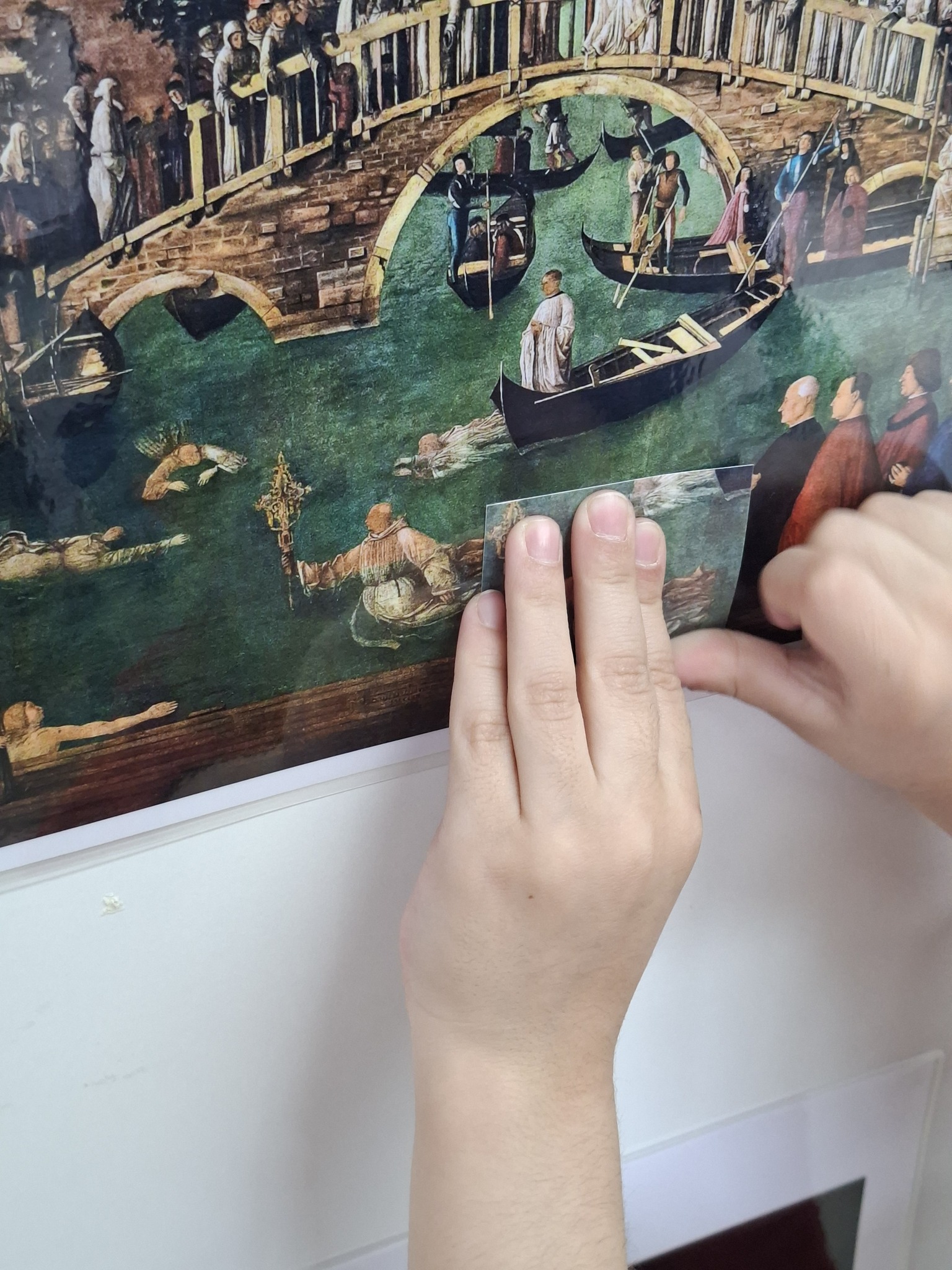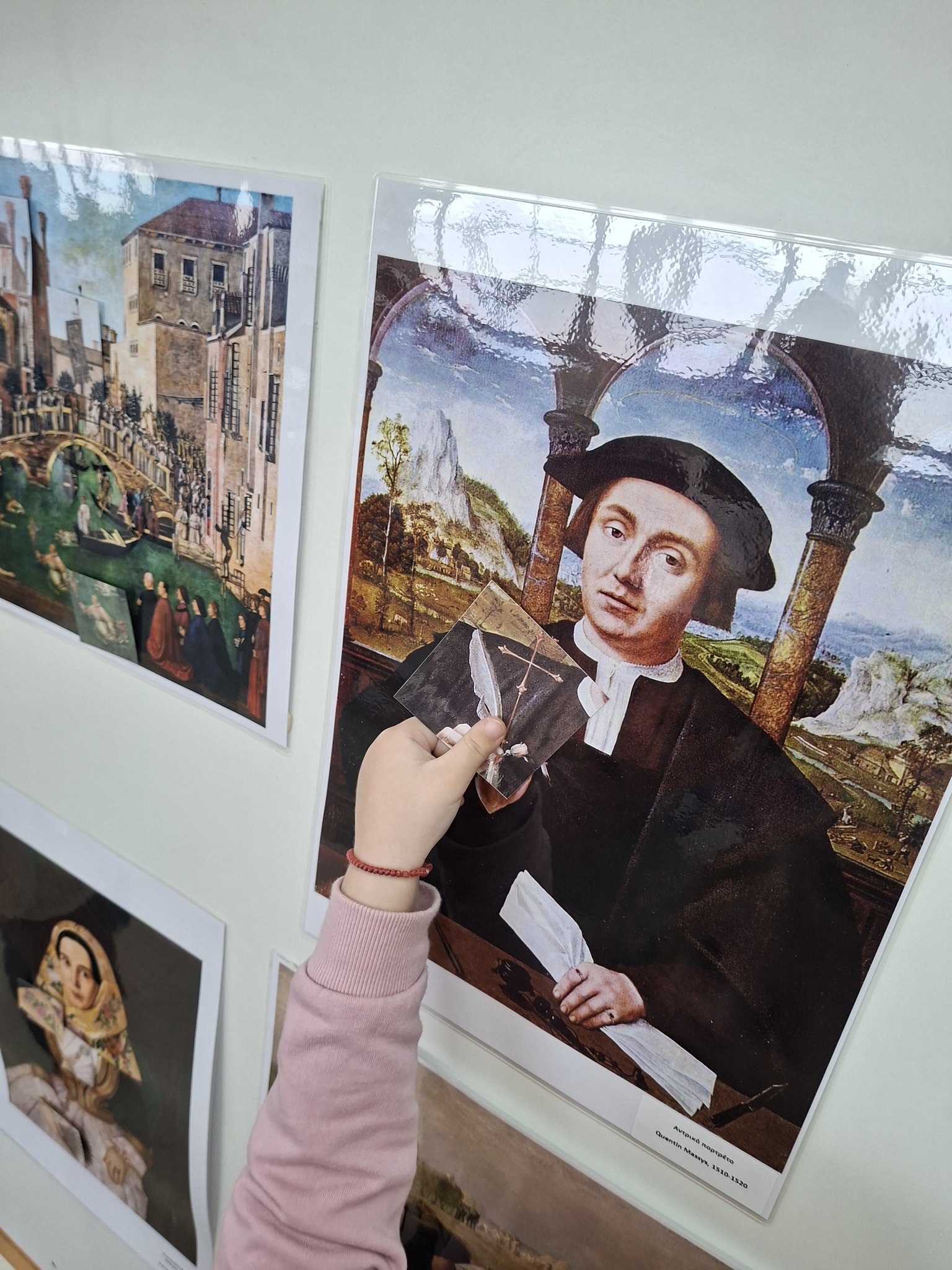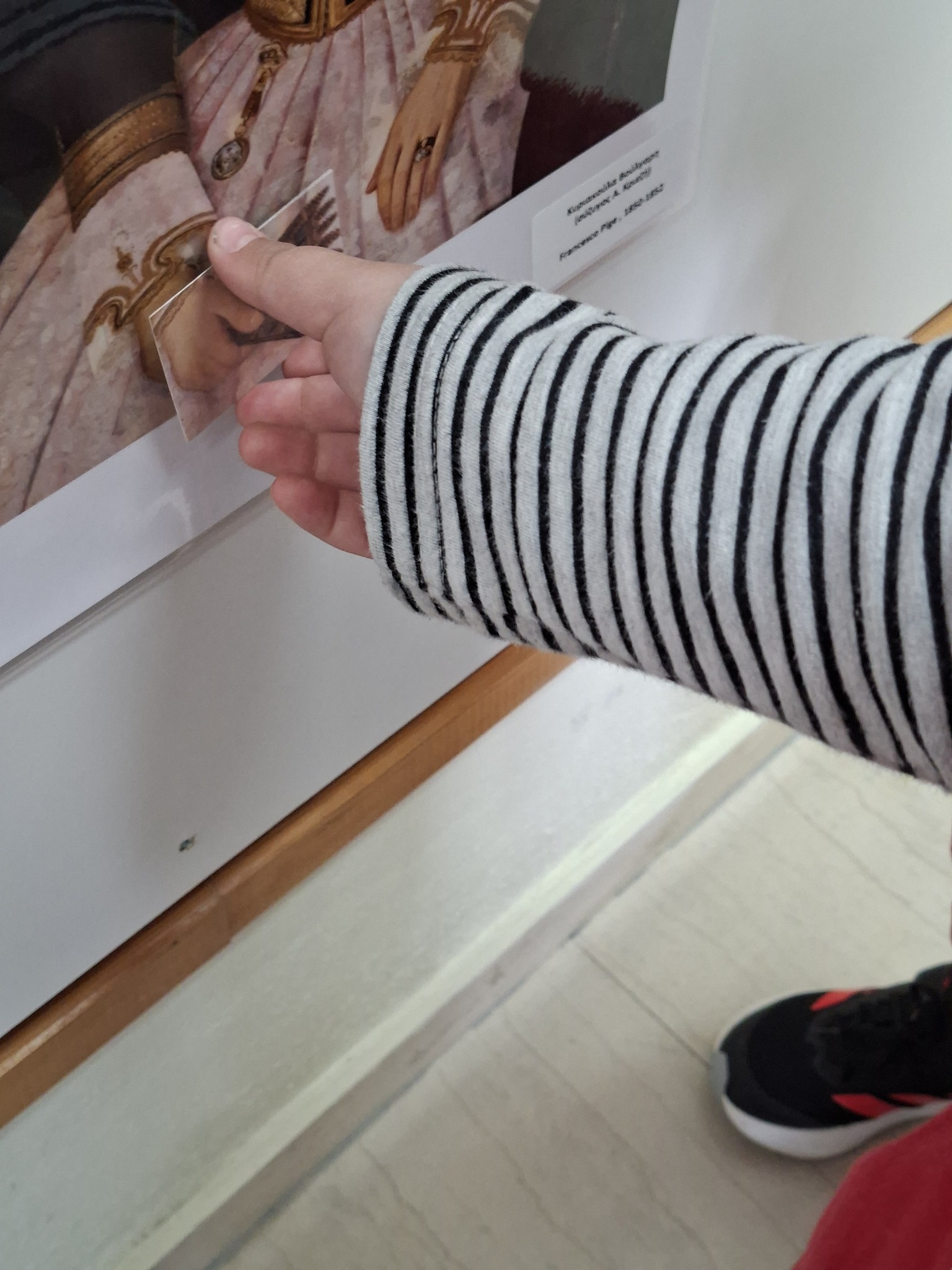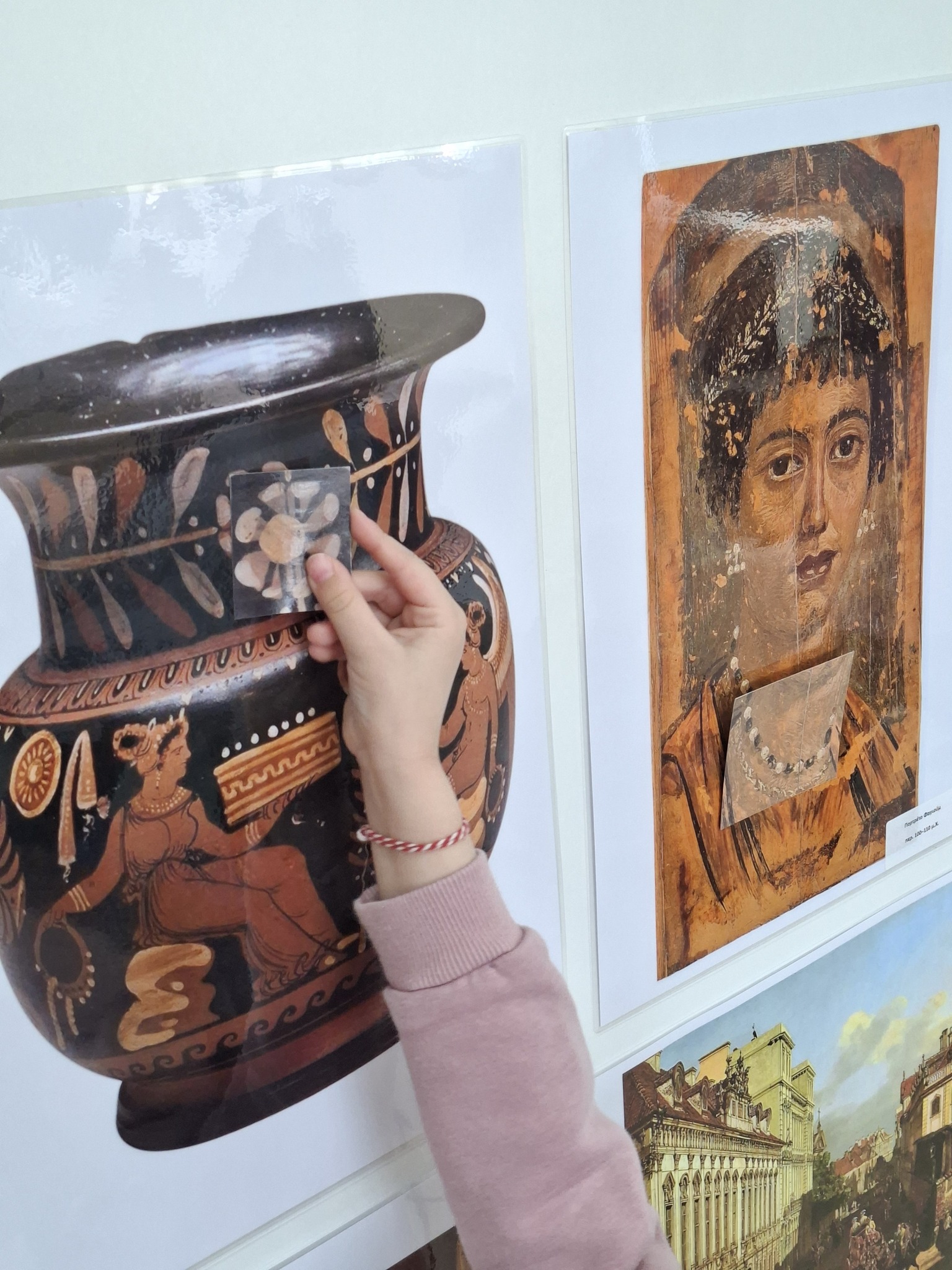 Αγγειογραφίες, τοιχογραφίες, πορτρέτα, πίνακες ζωγραφικής παρατηρήθηκαν με λεπτομέρεια από τα παιδιά και έγιναν “παράθυρο” για την ανακάλυψη του ιστορικού παρελθόντος. Τέλος μέσα από ένα παιχνίδι παρατηρητικότητας, οι μαθητές του 2ου Νηπιαγωγείου Κόνιτσας ταίριαξαν τις κάρτες στο εκάστοτε έργο τέχνης και η αγωνία, η ένταση, η χαρά αποτυπώθηκαν στο πρόσωπό τους!