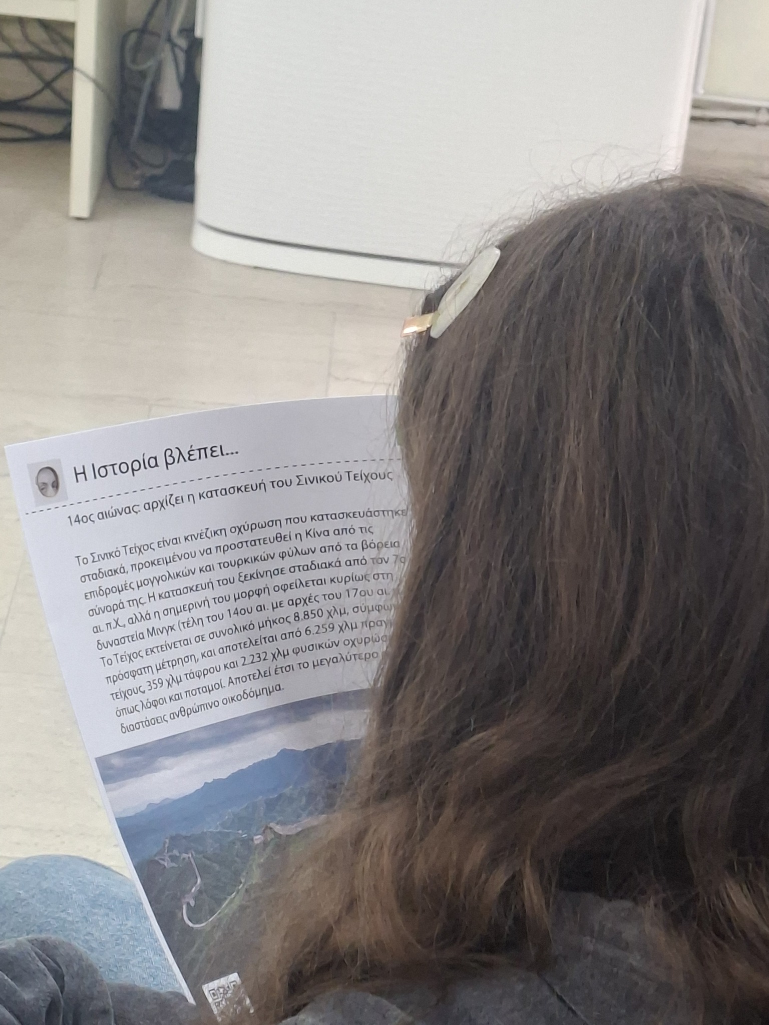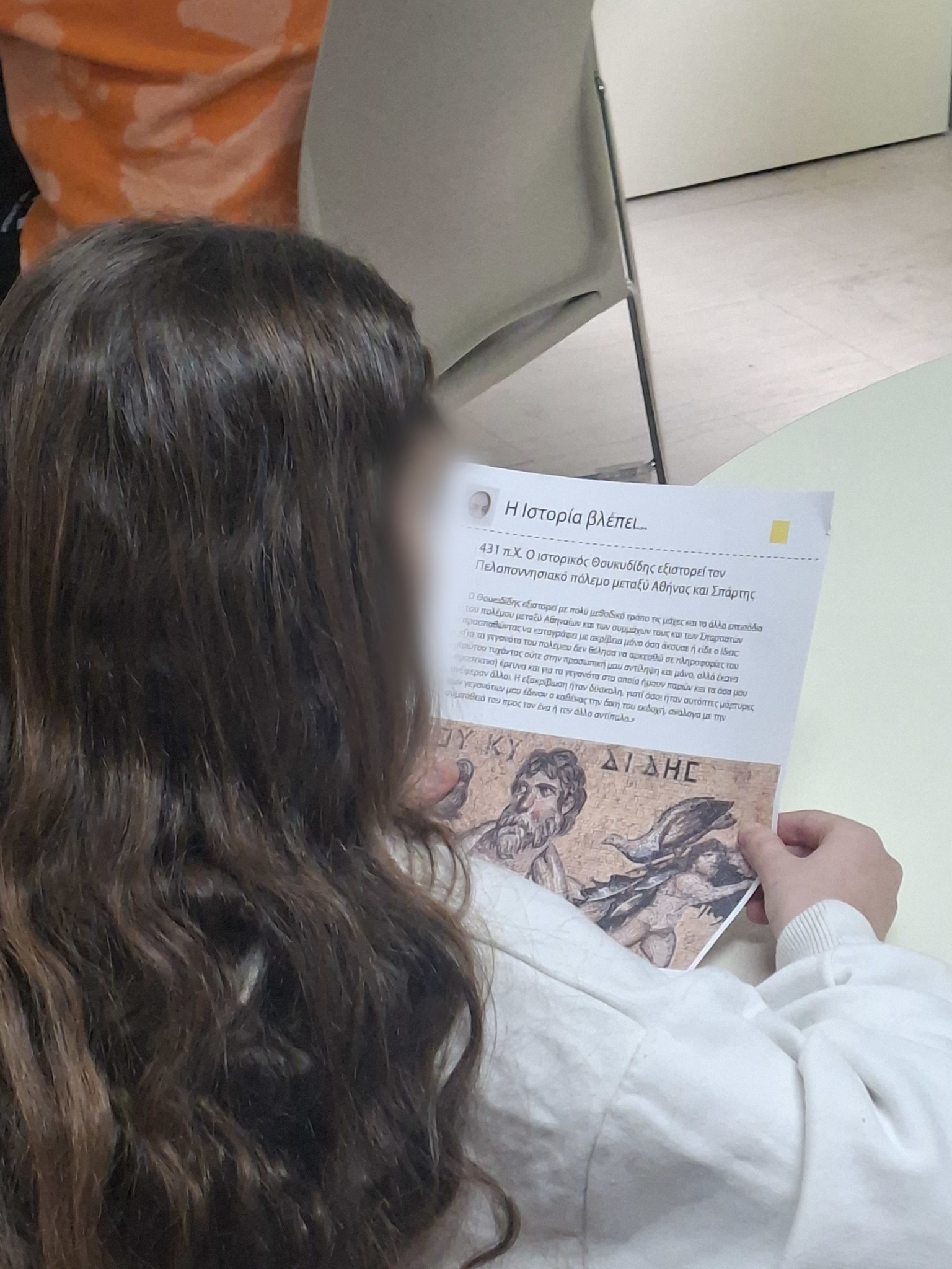 Μια χρονογραμμή δημιουργεί το νήμα για πλησιάσουν τα παιδιά τις διαφορετικές πλευρές μιας «Ιστορίας που βλέπει». Προσπαθούμε να διακρίνουμε αν η ιστορία βλέπει όλα τα γεγονότα και όλες τις κοινωνικές ομάδες, να δούμε πρόσωπα που αντίκρισαν πρώτη φορά άγνωστα τοπία, ανθρώπους που υπήρξαν αυτόπτες μάρτυρες μαχών, εγκλημάτων αλλά και εξαιρετικών επιτευγμάτων ή γεγονότων, μνημεία και γραμμένους τοίχους που στέκουν ως βουβοί «μάρτυρες» ιστορικών γεγονότων, παρατηρούμε ρούχα, χρώματα και άλλα χαρακτηριστικά στοιχεία που διακρίνουν ανθρώπους και κοινωνικές ομάδες.