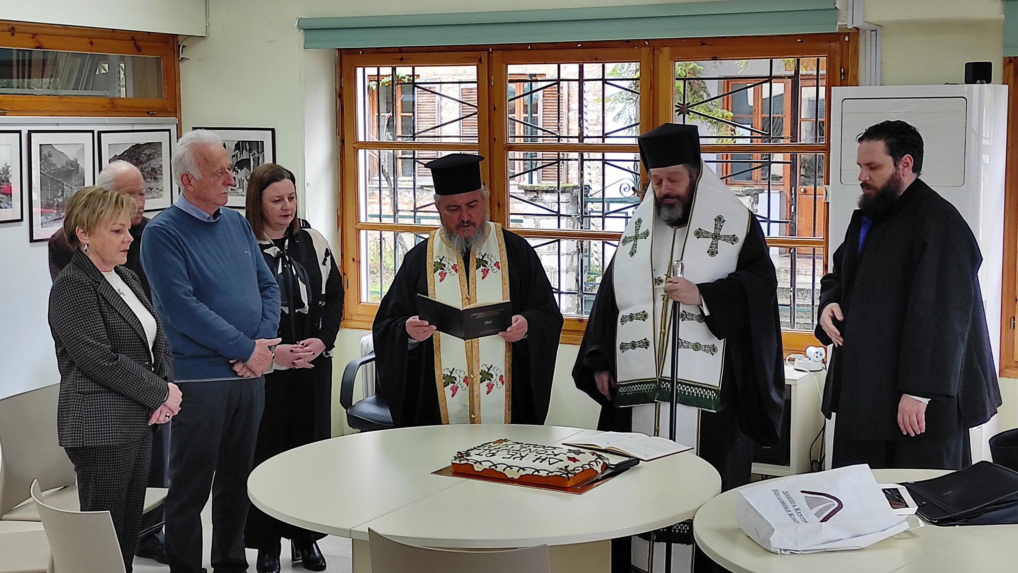 ην Δευτέρα 26/01/2026 πραγματοποιήθηκε η κοπή της πίτας. Την εκδήλωση τίμησαν με την παρουσία τους ο Σεβασμιώτατος Μητροπολίτης Δρυινουπόλεως, Πωγωνιανής και Κονίτσης, κ.κ. Αλέξιος, το Εφορευτικό Συμβούλιο και το προσωπικό της Βιβλιοθήκης